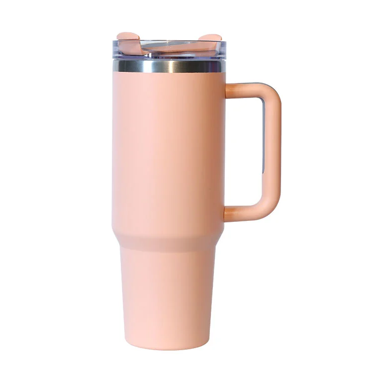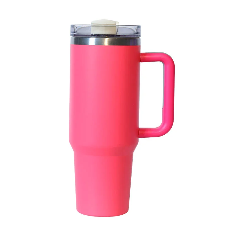 Denne 40 oz tumbleren med håndtak laget av rustfritt stål i matkvalitet, og sikrer at hvert trinn fra råvarer til sluttproduktet gjennomgår streng kvalitetskontroll, og involverer over 30 fine prosesser i hele produksjonsstrømmen.