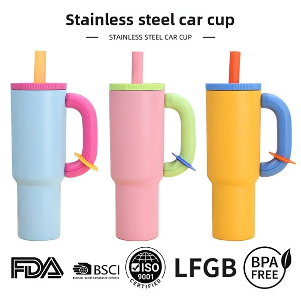 40 oz rustfritt stålvakuumisolerte reisende tumblere med håndtak og halm er laget av rustfritt stål av høy kvalitet, med den indre foringen laget av 304 rustfritt stål som oppfyller matsikkerhetsstandarder, og sikrer sikker bruk. Skallet er laget av 201 rustfritt stål, noe som gir ekstra strukturell styrke.
