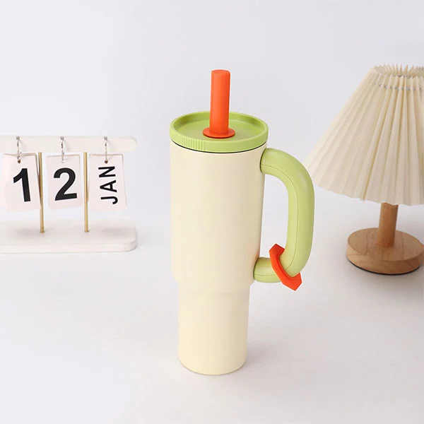 I tillegg er den doble vakuumstrå termos bærbare utekoppen for camping designet med et stort håndtak, noe som er lett å forstå og gjør operasjonen mer praktisk. Den har utmerket varmebevaring og kjøling. Den brede felgdesignet gjør det veldig enkelt å tilsette isbiter.