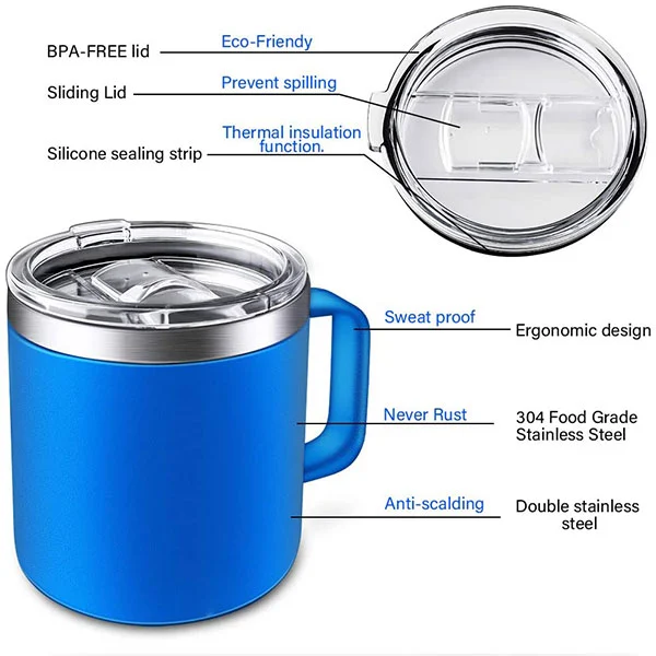 - Utstyrt med et gjennomsiktig plastdeksel med halmhull og et skyvelokk, kan den effektivt låse inn kaffe, te eller andre drikker slik at du kan nyte når som helst.