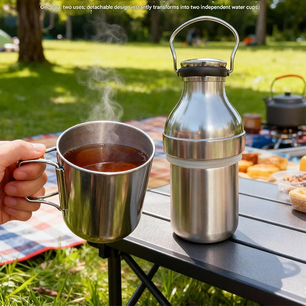 Kudikes slitesterke utendørs avtakbare isolerte flaske er en veldig kul termos, hvorfor sier du det? På grunn av sin unike design og funksjonalitet kan den demonteres i to kopper, noe som betyr at når du kjøper en termos kan flere personer bruke den sammen. Den kommer også med et håndtak, noe som gjør den veldig praktisk å bære. Jeg tror at termosflasken vår oppfyller alle aspekter av ditt fantastiske liv. Enten det er camping, pendling, fotturer eller reiser, kan vi tilby containere som er både isolerte og kalde, noe som effektivt reduserer engangsavfall.