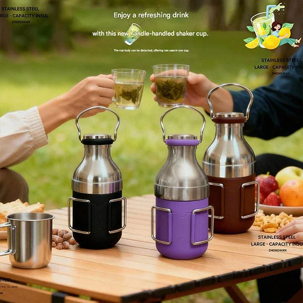 Den utendørs avtakbare isolerte flasken kommer med et håndtak for enkel bæring.