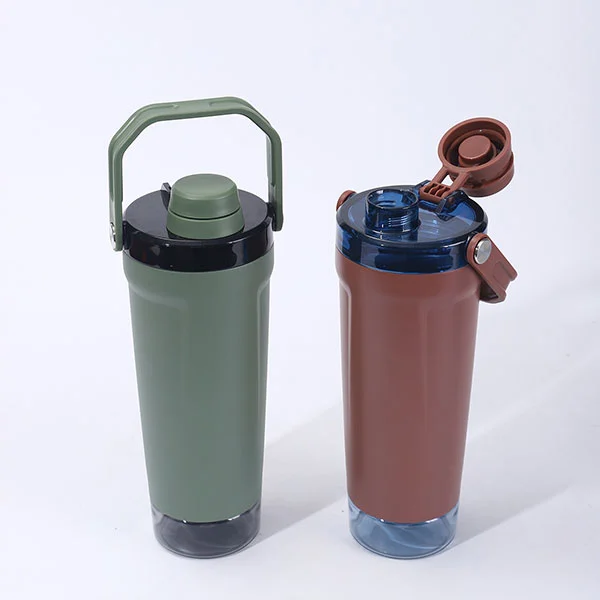 Bunnen av Shakers Bottle er designet med et oppbevaringsrom laget av PC-materiale, som kan inneholde daglig proteinpulver, teblader, medisiner osv. Denne lekkasjesikre designen er designet for å skille seg fra det rustfrie stålet i bunnen.