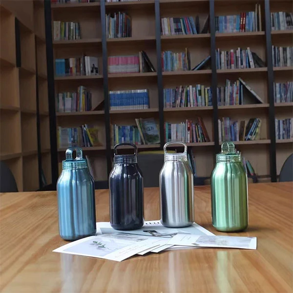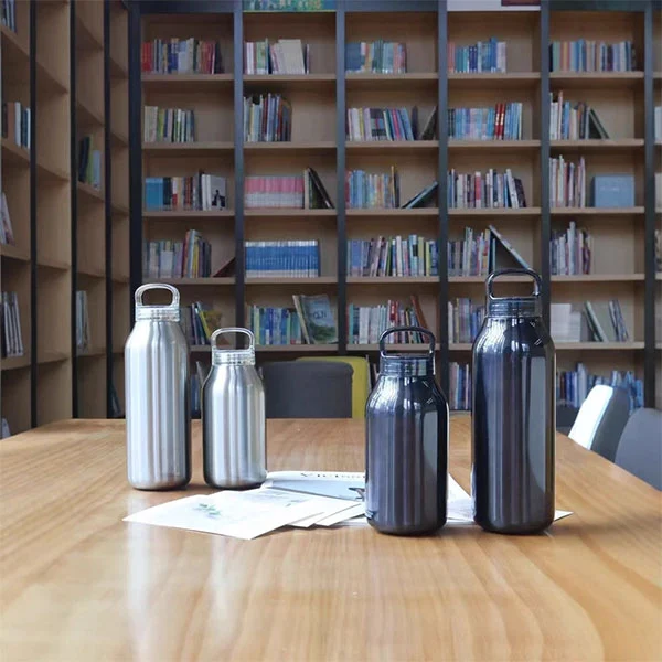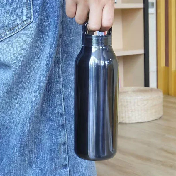 Hrdration vannflaskemateriale er matvare 304 rustfritt stål, noe som sikrer at delene i kontakt med vann er trygge og hygieniske, og ivaretar helsen til forbrukerne. Lokkdesignet kommer med en håndtak, slik at en finger enkelt kan løfte den.