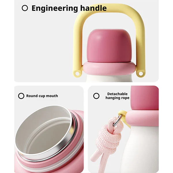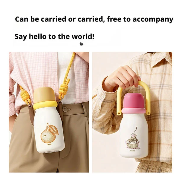 BPA-fri termoskopp har en ergonomisk flaskekroppsdesign, noe som gjør det enkelt for babyer (over 18 måneder) å gripe med sine små hender